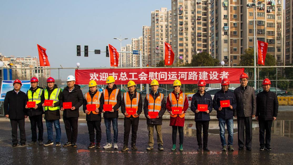 在新春佳節(jié)即將到來之際,1月19日上午,市總工會(huì)副主席戚安寶帶隊(duì)來到運(yùn)河路快速化改造工程項(xiàng)目部,親切慰問了一線施工人員,并為他們送上了新春的祝福。城控集團(tuán)副總經(jīng)理季紅軍、工會(huì)主席張正斌參加了慰問。