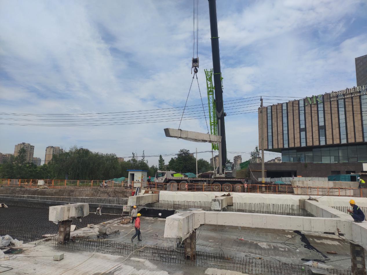 文昌路隧道全長470米,是揚(yáng)州五橫七縱快速路網(wǎng)建設(shè)中的關(guān)鍵一環(huán)。砼支撐作為文昌路隧道圍護(hù)結(jié)構(gòu)的首道支撐,承擔(dān)著抵抗圍護(hù)結(jié)構(gòu)側(cè)向水平位移,提升基坑穩(wěn)定性的作用,是繼文昌路隧道底板強(qiáng)度達(dá)標(biāo)之后,側(cè)墻澆筑之前的重要施工環(huán)節(jié)。