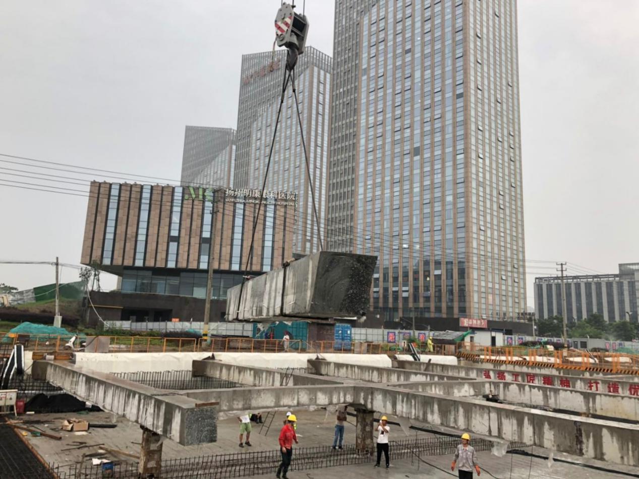 為確保首段砼支撐安全順利拆除,項目部積極做好各項準(zhǔn)備工作,細(xì)化施工方案、強(qiáng)化安全措施,并安排專人對每個施工環(huán)節(jié)進(jìn)行技術(shù)交底。此次拆除的砼支撐長8米、高0.8米、寬0.8米、重13.3噸,采用了汽車吊預(yù)起吊、兩臺鏈鋸?fù)瑫r切割的拆除方式。
