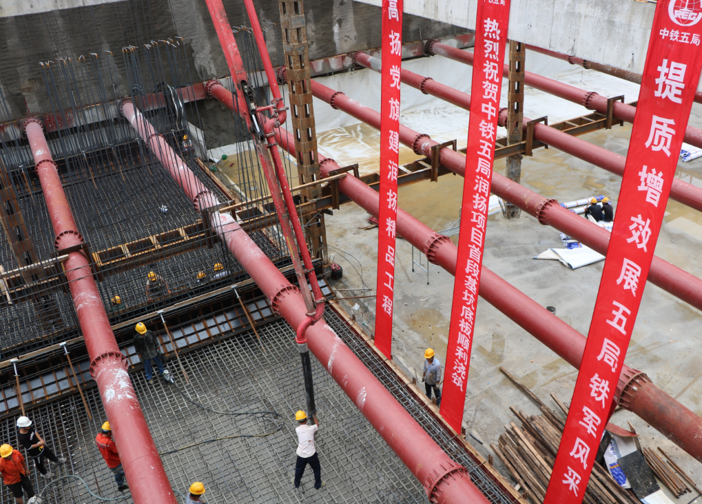 首段主體結構底板混凝土的順利澆筑,拉開了項目主體結構施工的序幕,鼓舞了參建人員的士氣,掀起了項目施工大干熱潮。下一步,項目部將以安全為前提、以進度為主線、以質(zhì)量為保障,全力推進項目建設!