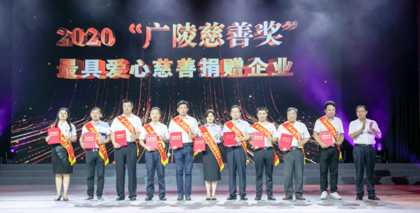 9月5日,在廣陵區(qū)舉辦的“向上向善?一路有你”公益慈善演出活動(dòng)上頒發(fā)了“廣陵慈善獎(jiǎng)”獎(jiǎng)項(xiàng),城控集團(tuán)被授予“最具愛(ài)心慈善捐贈(zèng)企業(yè)”榮譽(yù)稱號(hào)。城控集團(tuán)黨委書(shū)記、董事長(zhǎng)葉善祥應(yīng)邀出席。