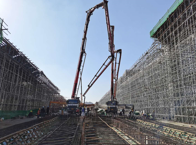 為保證項目工期,項目部統(tǒng)籌兼顧,積極謀劃,在保證橋面附屬工程施工的同時,也保證了箱梁施工工作的穩(wěn)步推進。每一次澆筑前,對施工班組進行質(zhì)量安全技術(shù)交底,嚴(yán)格過程控制和工序銜接,確保工程質(zhì)量;現(xiàn)場施工嚴(yán)格按照專項方案,現(xiàn)場技術(shù)負責(zé)人對每道工序進行嚴(yán)格審核,牢牢把關(guān),以“高標(biāo)準(zhǔn),嚴(yán)要求”進行每道工序的驗收;項目成立黨員先鋒隊和青年突擊隊,黨員領(lǐng)導(dǎo)干部沖鋒在前,全體參建人員迎難而上,緊盯節(jié)點,細化措施,落實責(zé)任,強力推動工程順利進展;同時,現(xiàn)場施工人員積極主動爭取一切有利條件,攻堅克難,搶抓時機,多措并舉,合理配置資源,全力保障每一聯(lián)現(xiàn)澆箱梁的順利澆筑。此次主線現(xiàn)澆箱梁的澆筑完成,為項目全面進入附屬工程施工、完成整體目標(biāo)任務(wù)奠定了堅實的基礎(chǔ)。截止日前,工程全部66聯(lián)現(xiàn)澆箱梁,已澆筑61聯(lián);支架已全部搭設(shè)完成;附屬工程防撞護欄已完成9800米,完成64.1%;橋面鋪裝已完成48聯(lián),完成64%;正在進行瀝青攤鋪準(zhǔn)備工作,各工序施工正穩(wěn)步推進中。
