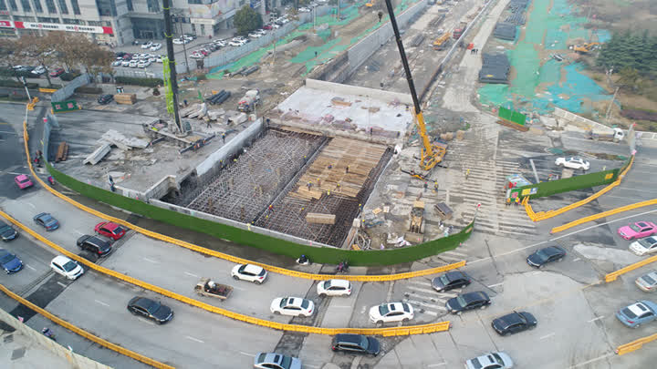 為了保證工程進度,確保文昌中路東西向車流暢通,為市民出行提供方便,今年5月20日蓋板正式投入使用。它所撐起的工作面,為隧道主體結(jié)構(gòu)施工提供了寶貴的作業(yè)時間。目前,工程已進入頂板澆筑階段,需對原有蓋板進行拆除。為了按時完成拆除任務(wù),項目部調(diào)用了220T汽車吊輔助施工,并安排兩班工人輪班施工,負責人現(xiàn)場緊盯蓋板拆除全過程,確保施工質(zhì)量與安全。