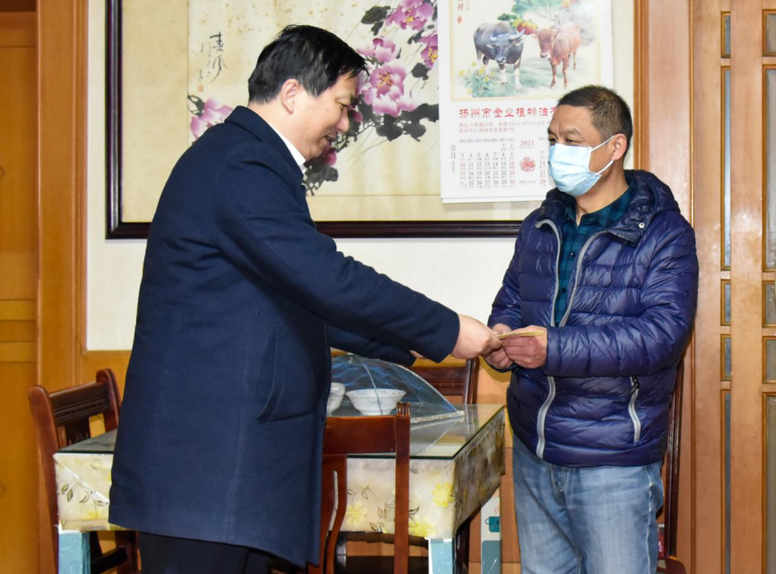 1月25日上午,集團黨委書記、董事長葉善祥帶隊先后來到因病致困的兩名揚州中燃公司職工家中慰問,親切詢問了他們的身體狀況,詳細了解其家庭生活和醫(yī)療情況,鼓勵他們要以積極樂觀的態(tài)度面對生活,堅定信心走出困境。同時叮囑揚州中燃公司負責(zé)人,要給予困難職工們更多的關(guān)心關(guān)愛,及時幫助他們解決實際問題。