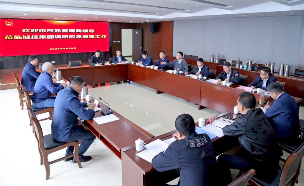 4月26日上午,揚州市應急管理局二級調研員李鳳如帶隊到城控集團調研應急管理工作。集團副董事長戚磊、集團企管部、揚州中燃、長江水務、供熱公司、潔源排水、市政管網公司相關人員參加調研活動。