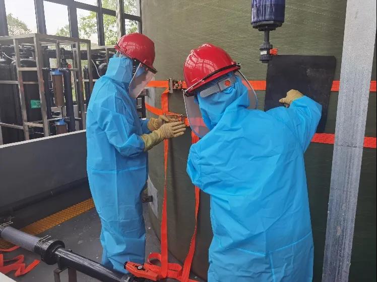 在結(jié)合理論學(xué)習(xí)之后,加強(qiáng)生產(chǎn)人員應(yīng)急處置和實(shí)操能力的演練。在演練環(huán)節(jié),模擬瓜洲變電所在生產(chǎn)運(yùn)行中35KV古洲線突發(fā)失電,值班人員啟動(dòng)應(yīng)急處置程序。班組人員按應(yīng)急預(yù)案步驟切除相關(guān)高壓低壓開關(guān)設(shè)備,再經(jīng)過(guò)一系列倒閘操作,迅速切換到到備用線路上,恢復(fù)了生產(chǎn)用電,并做好巡查匯報(bào)工作。演練采取實(shí)操方式進(jìn)行,整個(gè)倒閘操作過(guò)程步驟有序,嚴(yán)格按照突發(fā)事故處理流程進(jìn)行演練,嚴(yán)格使用規(guī)范的操作術(shù)語(yǔ),對(duì)所涉及到的驗(yàn)電、分合開關(guān)、檢查設(shè)備等操作符合安規(guī)要求,達(dá)到了預(yù)期效果。為強(qiáng)化?;饭芾?,提升員工應(yīng)急處置能力。近日,頭橋水廠針對(duì)次氯酸鈉制備和管理的安全操作規(guī)程要求,組織了次氯酸鈉儲(chǔ)罐和投加管道泄漏兩個(gè)科目的應(yīng)急處置演練,通過(guò)提升應(yīng)急處置能力,不斷強(qiáng)化?;返墓芾砗褪褂?。