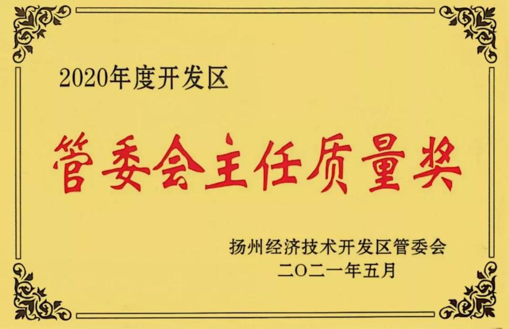 6月4日,揚(yáng)州市經(jīng)濟(jì)技術(shù)開發(fā)區(qū)召開全區(qū)質(zhì)量大會(huì),表彰在質(zhì)量管理方面取得突出成效的企業(yè)組織,長江水務(wù)公司榮獲“2020年度開發(fā)區(qū)管委會(huì)主任質(zhì)量獎(jiǎng)”。