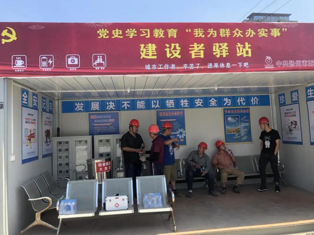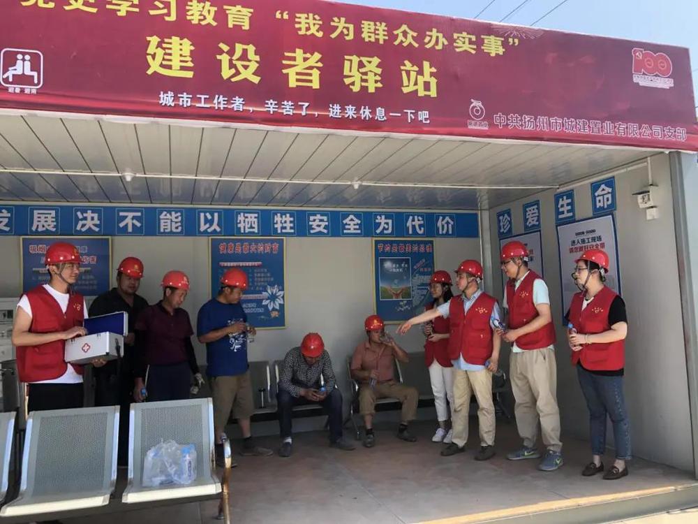 “建設者驛站”是城建置業(yè)公司黨支部籌劃為群眾辦實事、提供對外服務的一個穩(wěn)定且持久的志愿服務平臺。項目現(xiàn)場,烈日當空,滿頭大汗的建筑工人們在黨員志愿者的引導下前往驛站納涼休息、喝水飲茶,在接過志愿者及時遞過來的純凈水時,他們被烈日灼紅的臉上綻開了憨厚淳樸的笑容。支部負責人在詳細了解一線工人的工作生活情況以及防暑降溫措施后,現(xiàn)場給大家發(fā)放了大麥茶、清涼飲料、醫(yī)藥包等防暑降溫物品,他對施工人員克服高溫天氣影響,堅守崗位認真工作表示感謝,一再叮囑大家要始終把安全和健康放在首位,項目部要切實關心一線職工,組織好錯峰作業(yè)施工,認真落實防暑降溫措施,為廣大戶外勞動者送安全、送清涼,預防夏季生產(chǎn)安全事故發(fā)生,確保企業(yè)安全生產(chǎn)和項目建設有序推進。