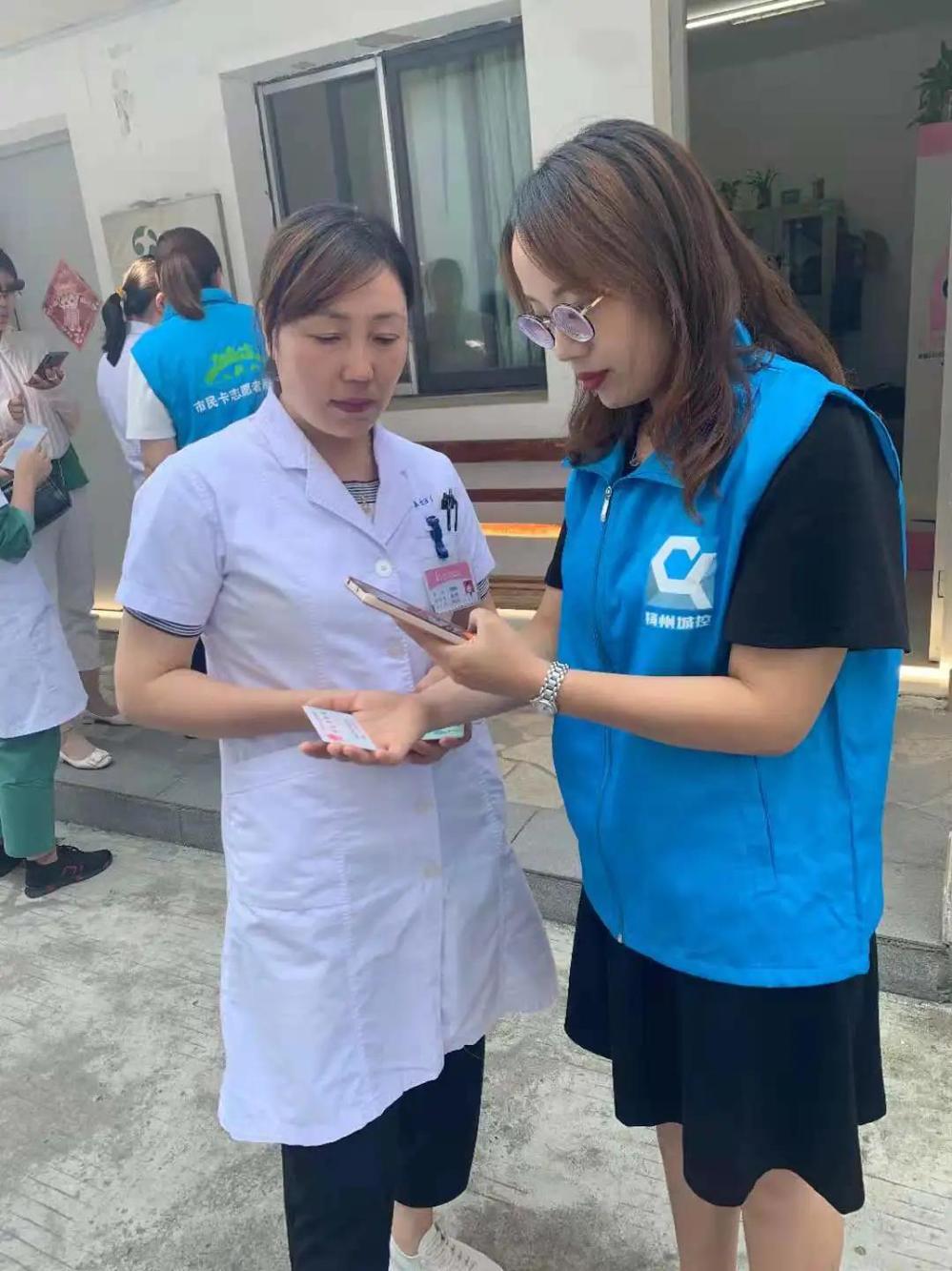 活動現(xiàn)場,市民卡公司黨員志愿者統(tǒng)一穿著藍馬甲,向婦幼保健院的醫(yī)患人員宣傳推廣市民卡公司標準卡等卡片的相關功能,現(xiàn)場解答群眾辦卡疑問,并提供現(xiàn)場充值服務。同時,志愿者們還通過發(fā)放宣傳資料、現(xiàn)場解答、APP實操指導等多種方式積極解答群眾提出的各項市民卡和“我的揚州”APP使用疑問,受到了在場群眾一致好評。