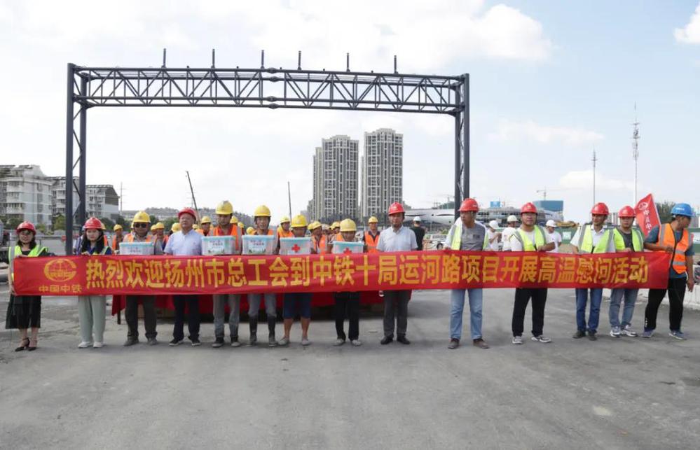 7月22日,揚州市總工會兼職副主席、市人社局副局長王錦程,揚州市總工會副調(diào)研員樊秉強一行先后來到潤揚快速路和運河快速路施工現(xiàn)場,走訪慰問高溫下堅守一線的施工人員。市總工會勞動和經(jīng)濟工作部部長賀光明、副部長周飛,市建設(shè)產(chǎn)業(yè)工會主任范華陪同慰問。城控集團副總經(jīng)理季紅軍、萬福公司主要負(fù)責(zé)人參加了慰問。