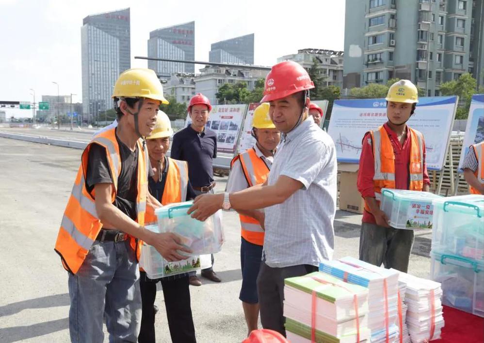 在慰問現(xiàn)場,王錦程一行在認(rèn)真了解了項目建設(shè)情況后,代表市總工會向一線施工人員付出的辛勤勞動表示了感謝,為他們發(fā)放了防暑降溫慰問品和安全生產(chǎn)法手冊,要求施工單位嚴(yán)格落實現(xiàn)場保護措施,合理安排作業(yè)時間,切實做好防暑降溫工作,時刻把人員健康和安全生產(chǎn)放在首位。同時,鼓勵施工人員再接再厲,繼續(xù)保持昂揚的斗志,發(fā)揚不怕吃苦的精神,確保工程按序時保質(zhì)保量完成。