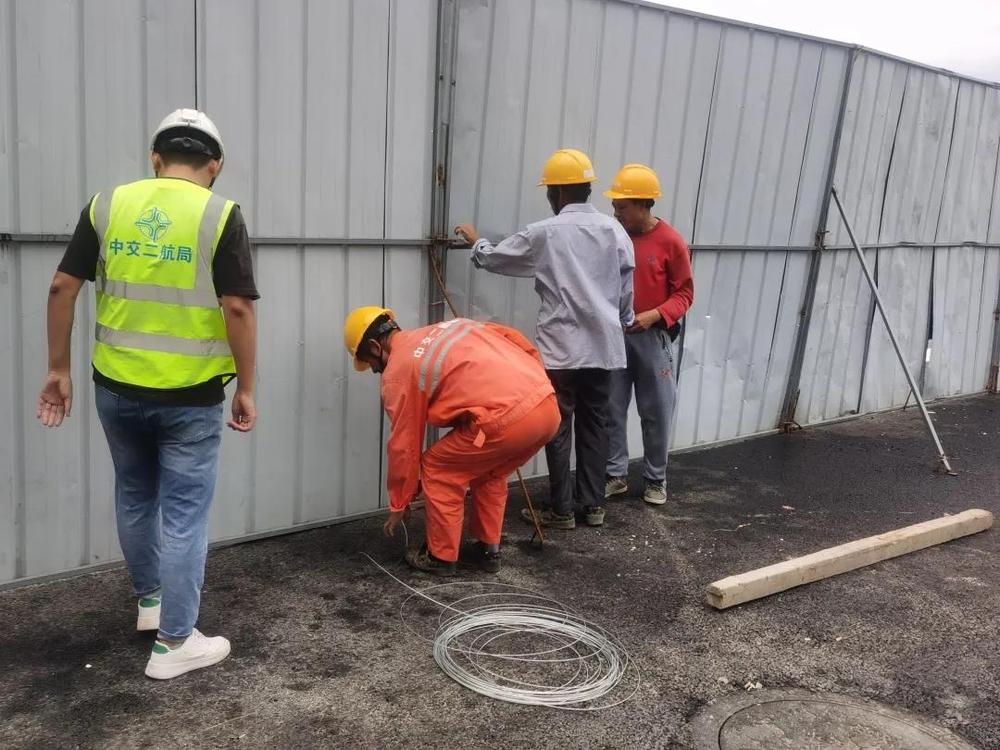 加強統(tǒng)籌協(xié)調,做好充分準備。各項目部抓早抓實抓細各項防汛防臺工作。一方面,制定應急預案、落實搶險隊伍、儲備應急物資;另一方面,加強臨時用電管理,加固民工駐地生活板房、工地圍擋及土方覆蓋,砌筑擋水墻,及時轉移機械設備,不間斷抽排臨時便道積水,增加警示標牌,確保生命安全。