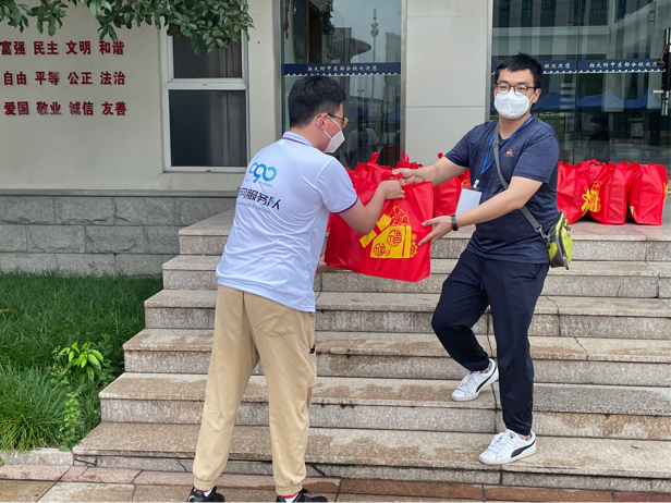為讓一線的防疫工作人員感受到來自公司的溫暖,8月11日,在管網(wǎng)公司黨支部精心安排下,服務(wù)隊(duì)25名抗疫志愿者在履行完揚(yáng)大附中東部分校核酸檢測(cè)點(diǎn)當(dāng)天的工作任務(wù)后,收到了公司黨支部送來的關(guān)愛與溫暖?!肮鞠氲锰艿嚼?!我家兩口子都是抗疫志愿者,她在邗江、我在廣陵,根本沒有時(shí)間去采購食材!”“我家已經(jīng)快沒米下鍋了,這真是解了我一家子的燃眉之急!”“太好了,這回我媽不用冒著風(fēng)險(xiǎn)出門買米了!”“我女兒終于可以吃上雞蛋了!”大家你一言我一語,說不出的高興。
