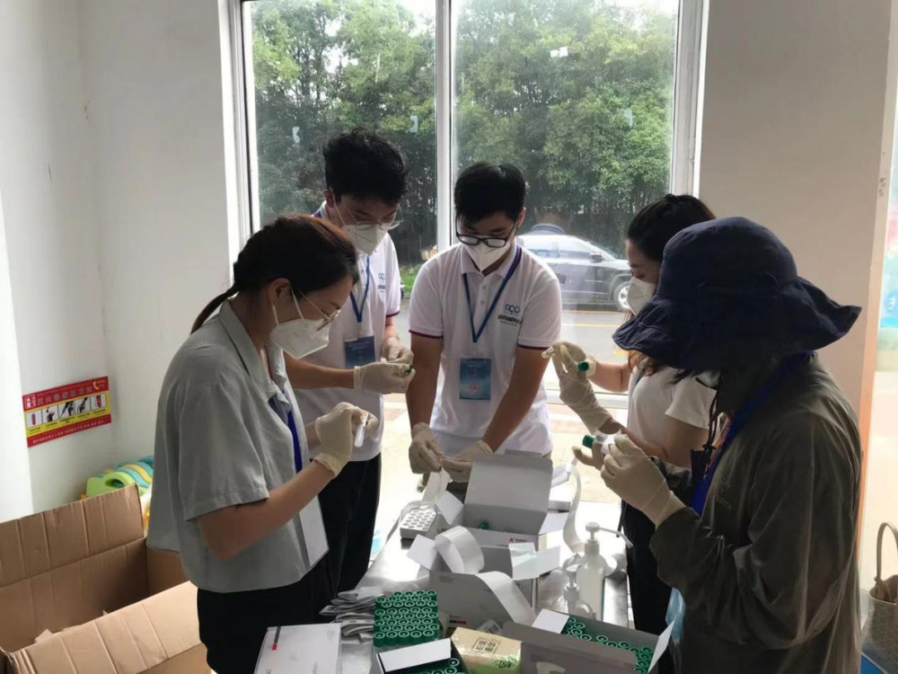雖然已是初秋,但雨后的揚(yáng)州仍略顯悶熱,為了讓隊(duì)里稍年長(zhǎng)的隊(duì)員多休息一會(huì)兒,兩個(gè)小伙子在協(xié)助做好核酸檢測(cè)準(zhǔn)備工作后便馬不停蹄地?fù)Q上防護(hù)服,顧不上滿頭的汗水,擔(dān)心的是能不能做好這次服務(wù)工作。但投入信息采集工作之后,他們便很快上手了,從一開(kāi)始的些許緊張到后面的從容面對(duì),動(dòng)作很快熟練了起來(lái),“請(qǐng)拿好身份證”,“請(qǐng)您拿好采樣管,交給采集醫(yī)護(hù)人員”,“請(qǐng)大家保持一米距離” ……一聲聲叮囑、一次次提醒,展現(xiàn)了“890”管網(wǎng)服務(wù)隊(duì)的精神風(fēng)貌和責(zé)任擔(dān)當(dāng)。經(jīng)過(guò)6個(gè)小時(shí)的 “戰(zhàn)斗”,隊(duì)員們圓滿完成了運(yùn)河佳園1300多戶居民的身份采集任務(wù)。