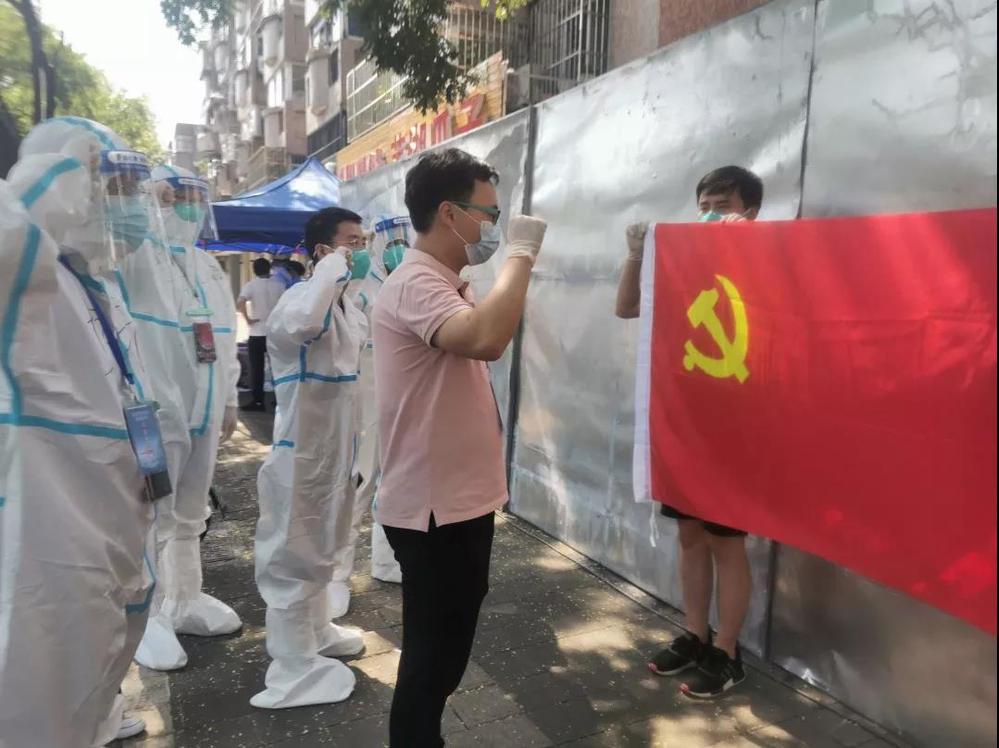 “城控集團(tuán)抗疫志愿服務(wù)行動臨時黨支部”的旗幟從武塘社區(qū)再一次插上了廣儲社區(qū)的地界上。
