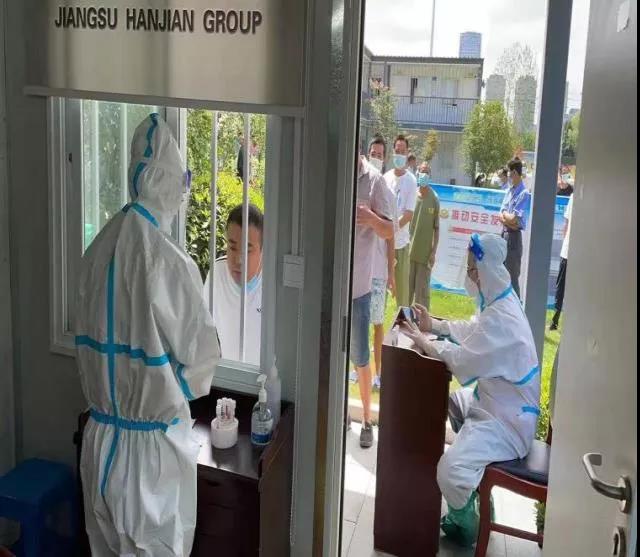 2.有序組織全員原地核酸檢測(cè)。為防止人員核酸檢測(cè)時(shí)發(fā)生交叉感染,項(xiàng)目部與屬地主管部門積極溝通,由醫(yī)護(hù)人員進(jìn)入工地進(jìn)行核酸檢測(cè),檢測(cè)過(guò)程中,各標(biāo)段至少安排5名以上管理人員配合核酸檢測(cè)秩序維持等工作,確保民工全員檢測(cè),一個(gè)不漏,檢測(cè)完畢,立刻進(jìn)行全面消殺。工地內(nèi)辦公區(qū)、生活區(qū)、食堂區(qū)每天兩次安排專人消毒并設(shè)置隔離區(qū),一旦發(fā)現(xiàn)有發(fā)熱、咳嗽等癥狀立即進(jìn)行隔離并匯報(bào)相關(guān)部門。