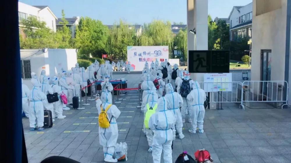 收拾好行李,當(dāng)天夜里12點(diǎn),穿上社區(qū)工作人員送來的防護(hù)服、防護(hù)面罩、N95口罩,懷著忐忑的心情,我和家人登上了離揚(yáng)的大巴車。