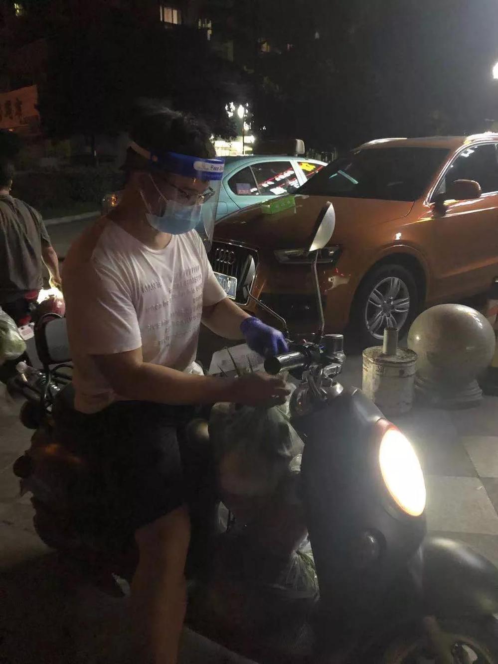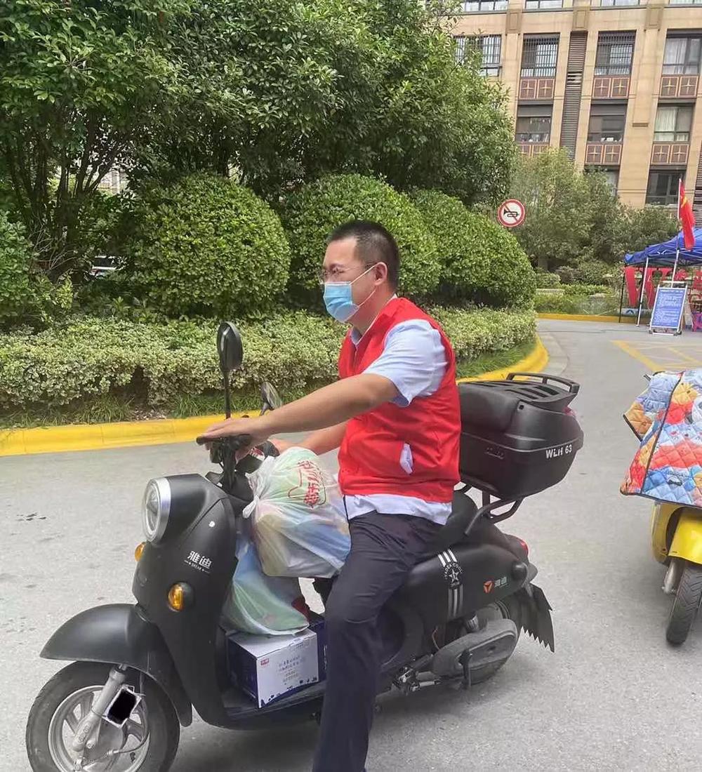 (計劃財務(wù)處吳亞洲,在璽園社區(qū)進(jìn)行蔬菜、肉品生活物資配送,每日往返100余次)