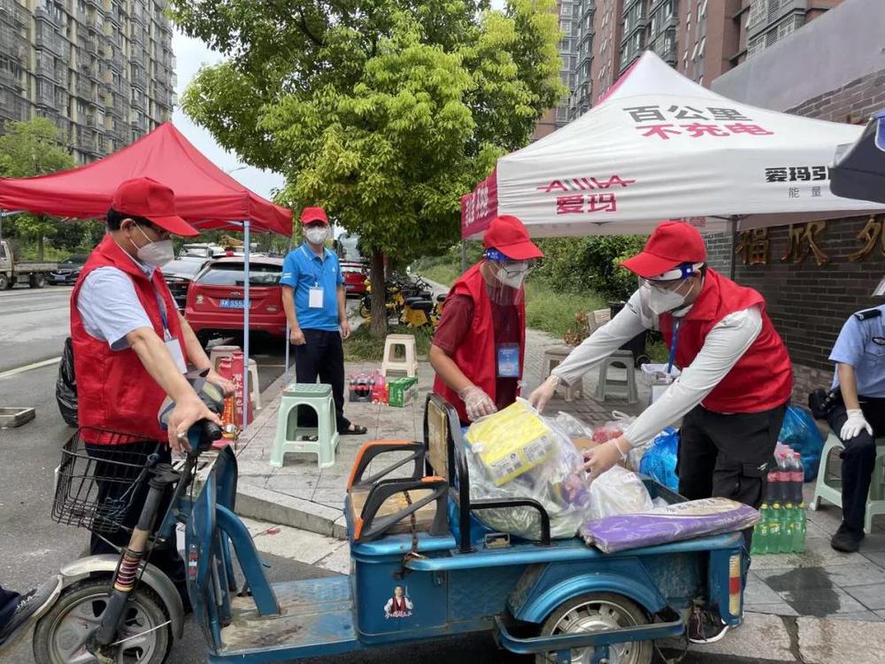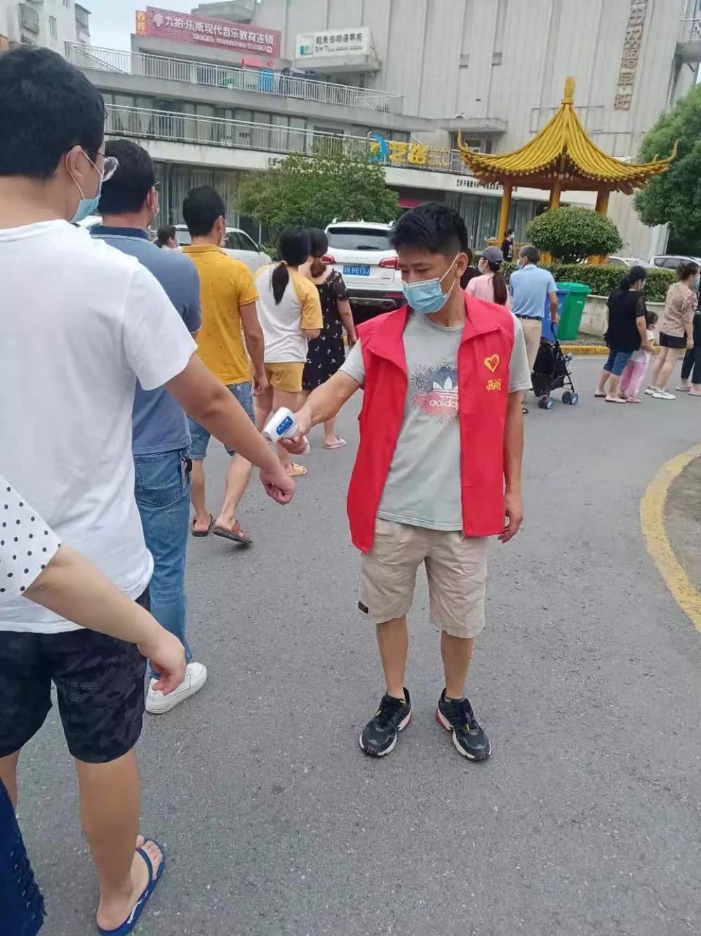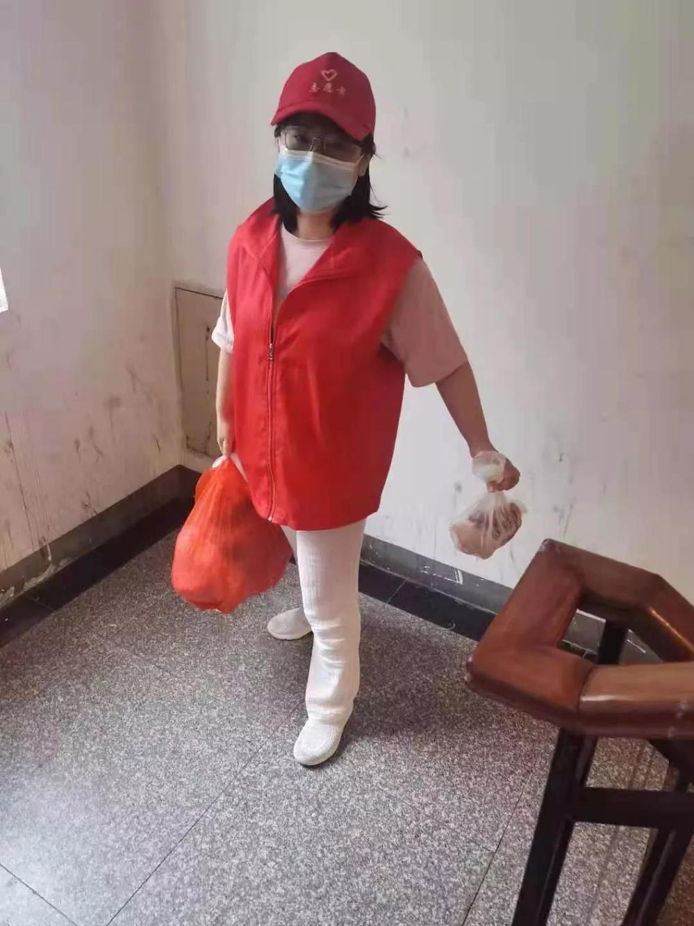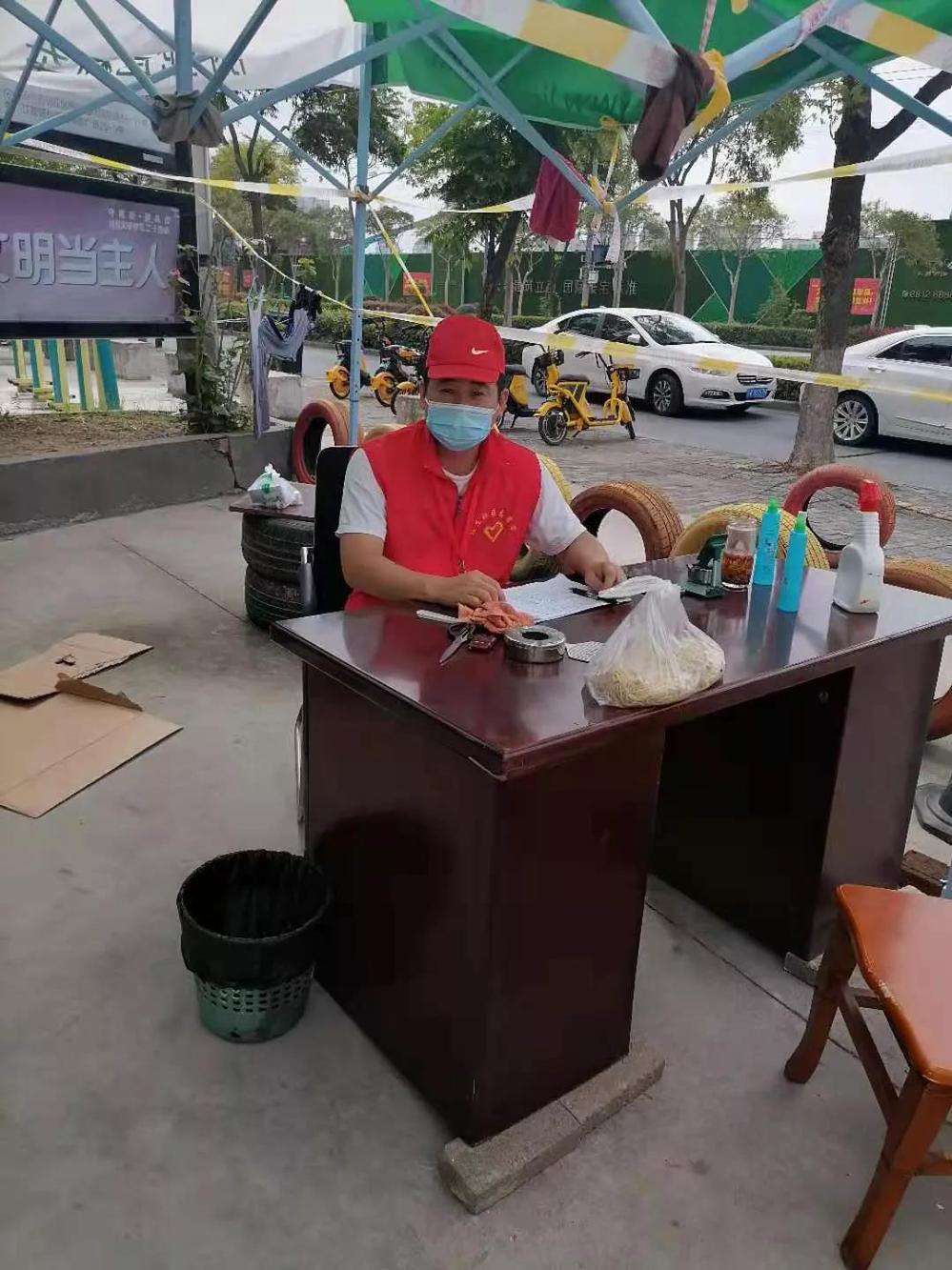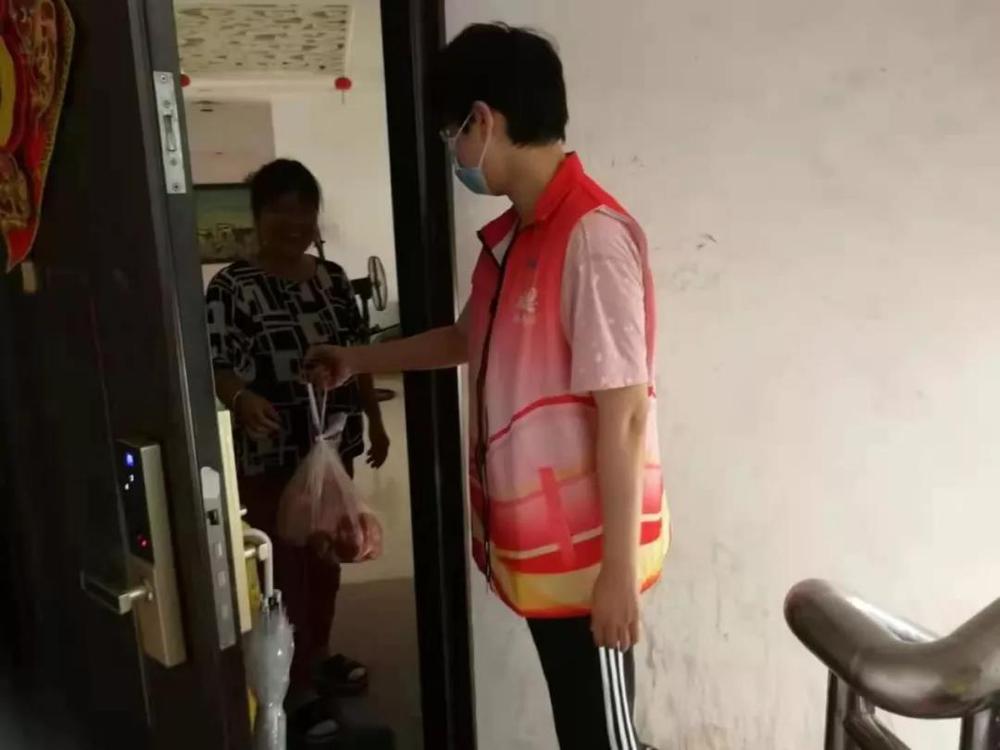 (綜合辦公室周易,在萬福社區(qū)幫助小區(qū)居民進(jìn)行物資幫送,牢記時刻保持1米線安全距離)