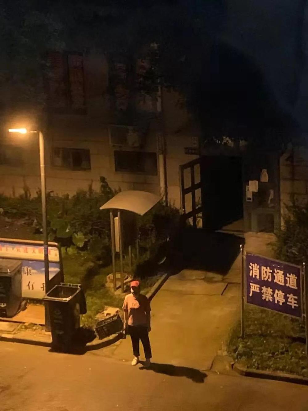 (夜深人靜時刻,生產(chǎn)運(yùn)行處許佳仍在五里社區(qū)萬鴻城市花園小區(qū)內(nèi)路口進(jìn)行單元樓管控,勸返出樓棟人員進(jìn)行居家隔離)