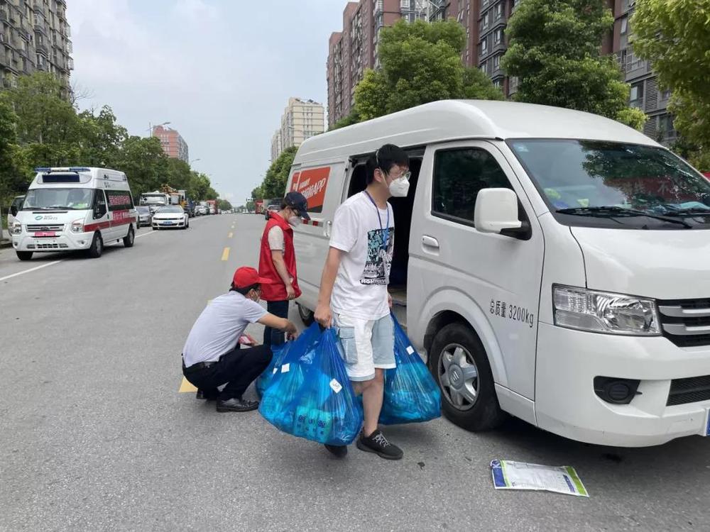 (安全保衛(wèi)處 易飛,在萬福社區(qū)為配送物資進(jìn)行裝車,做好樓棟統(tǒng)計后的分發(fā))