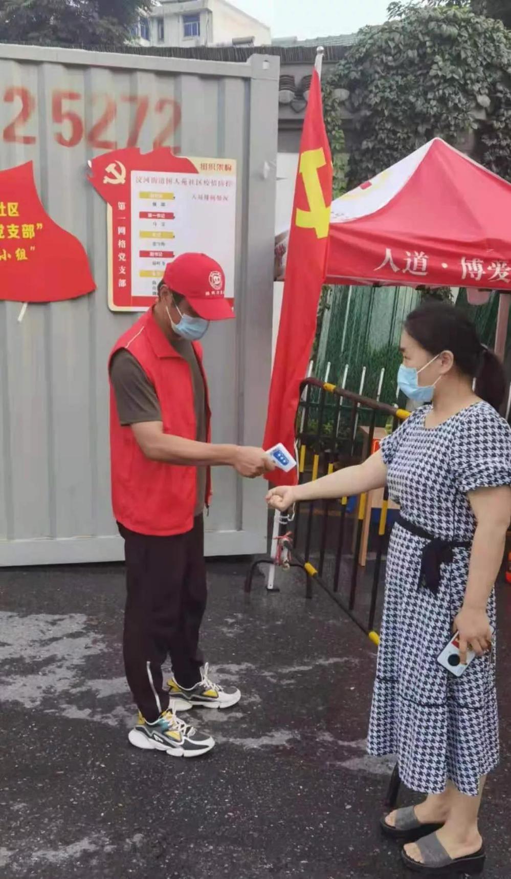 (生產(chǎn)運(yùn)行處陳晨,在樹人苑社區(qū)認(rèn)真對核酸檢測人員進(jìn)行體溫測量,同時進(jìn)行居家隔離勸導(dǎo))