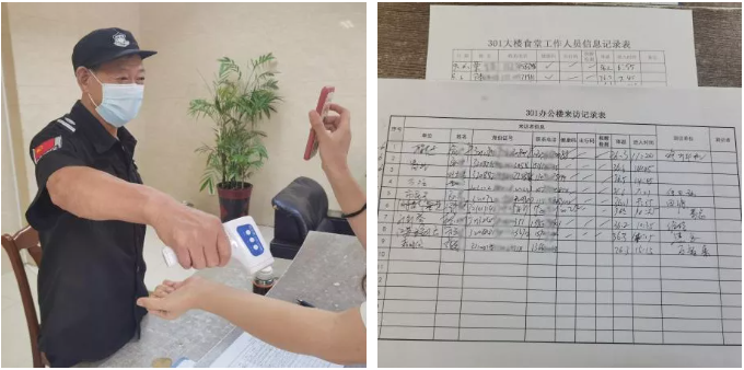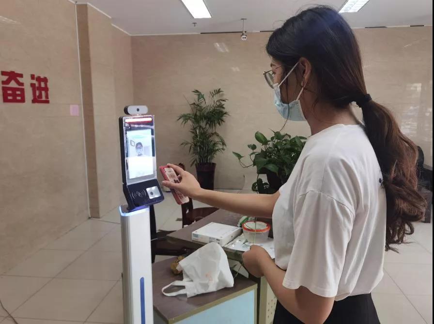 公司入口加強(qiáng)人員出入管理。復(fù)工人員在返崗前需向公司提交近三次核酸檢測報告和“兩碼”。保安嚴(yán)格把關(guān)進(jìn)出人員全程規(guī)范佩戴口罩,通過設(shè)立的智能測溫掃碼一體機(jī)對到崗職工進(jìn)行體溫測量,并登記來訪人防疫信息。體溫?zé)o異常且蘇康碼綠碼方可進(jìn)入辦公區(qū)。