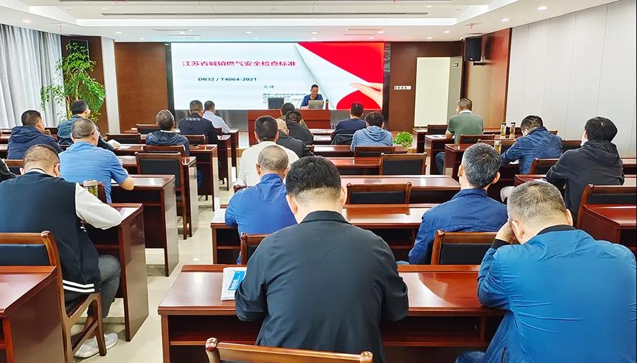 培訓會上,吳靖詳細講解了“江蘇省城鎮(zhèn)燃氣安全檢查標準”(2021年9月1日施行)主要修訂內(nèi)容、適用范圍和使用原則等新要求、新變化,逐一解讀了該檢查標準關于物料隔離、管道標識、可燃氣體探測器等內(nèi)容。培訓后,大家就自己在安全生產(chǎn)運營中遇到的問題,與吳靖進行了探討和交流。