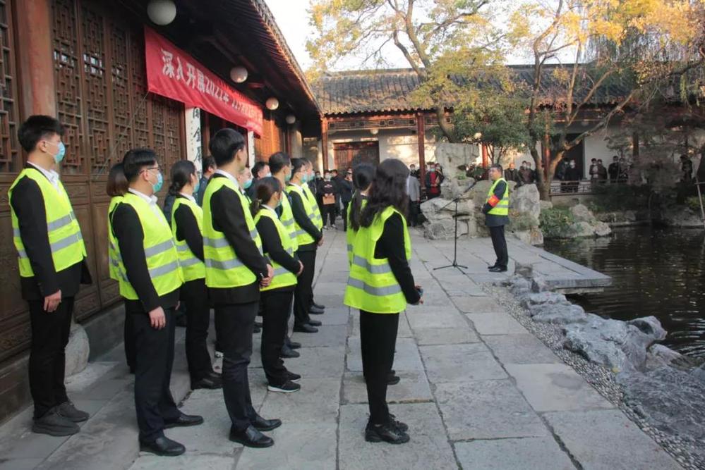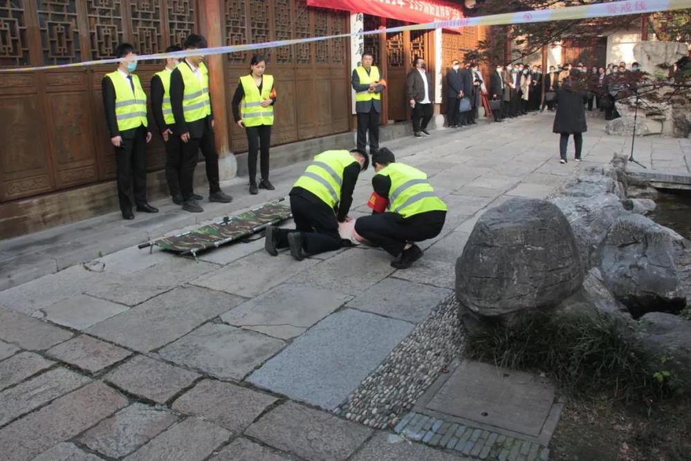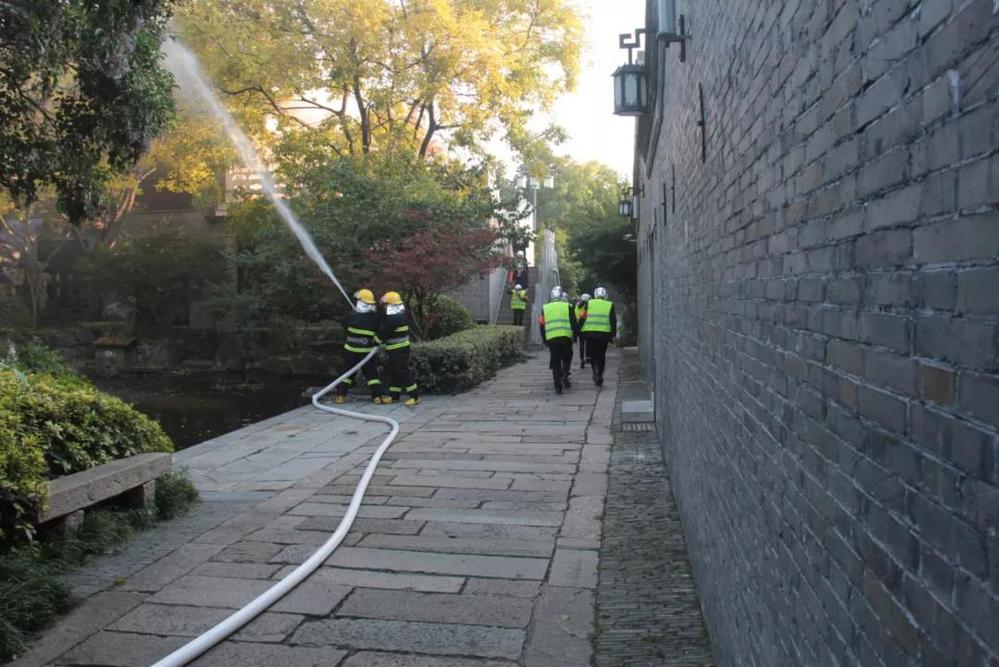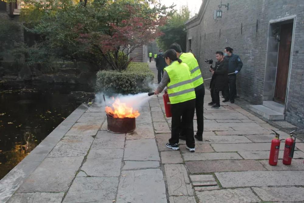 會(huì)后,全體人員在長(zhǎng)樂客棧湖心亭,共同觀摩了由名城公司組織開展的“119”消防應(yīng)急疏散與滅火演練活動(dòng)。