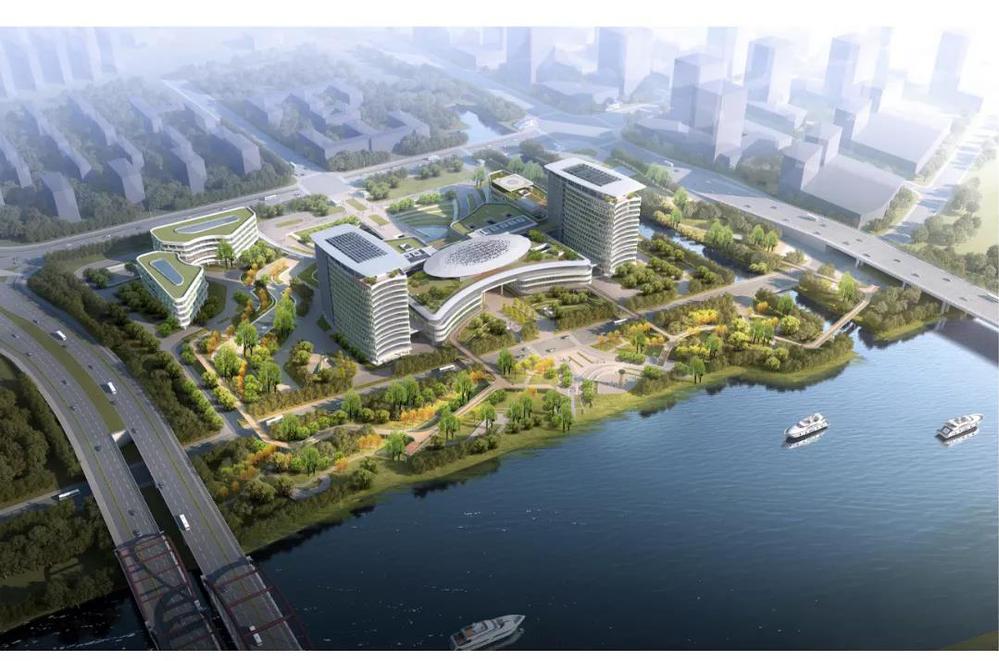 此鋼結構穹頂位于中間裙樓醫(yī)技部上方,半透明的金屬華蓋借助運河之勢,日間反射陽光閃亮矚目,夜間透出燈光華麗璀璨,其蛋殼形狀寓意生命的孕育。