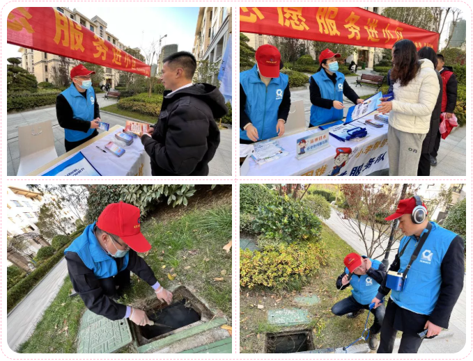 活動現(xiàn)場黨員志愿者們向社區(qū)居民介紹冬季供水設(shè)施防寒保溫的方法,介紹了家庭用水設(shè)施防凍化凍的一些常識和技巧,向用戶發(fā)放供水服務(wù)指南和冬季防凍“友情提醒”宣傳單。小李服務(wù)隊(duì)的黨員志愿者們分成幾個小組,在小區(qū)內(nèi)的水表井、閘門井內(nèi)鋪設(shè)保溫棉,做好保溫措施,并對需要上門服務(wù)的特殊用戶進(jìn)行登記,及時解決用水困難。老兵測漏隊(duì)的同志們對小區(qū)內(nèi)的管道、消防栓及閘門的防凍、保溫情況進(jìn)行巡查,消除冬季用水隱患。