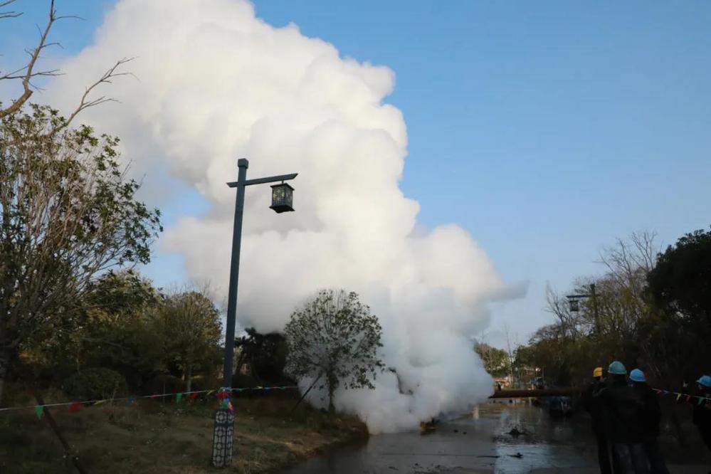 為確保吹掃工作安全順利進行,供熱公司提前制定供熱管道吹掃技術(shù)方案并進行模擬操作。15:00,隨著閥門緩緩打開,一股蒸汽噴薄而出,市區(qū)北部主干線(一期)工程管道吹掃正式開始。市區(qū)北部主干線(一期)工程吹掃作業(yè)的圓滿完成,標(biāo)志著該工程具備投運條件,為實現(xiàn)揚州市區(qū)管網(wǎng)“互聯(lián)互通”奠定了堅實的基礎(chǔ)。