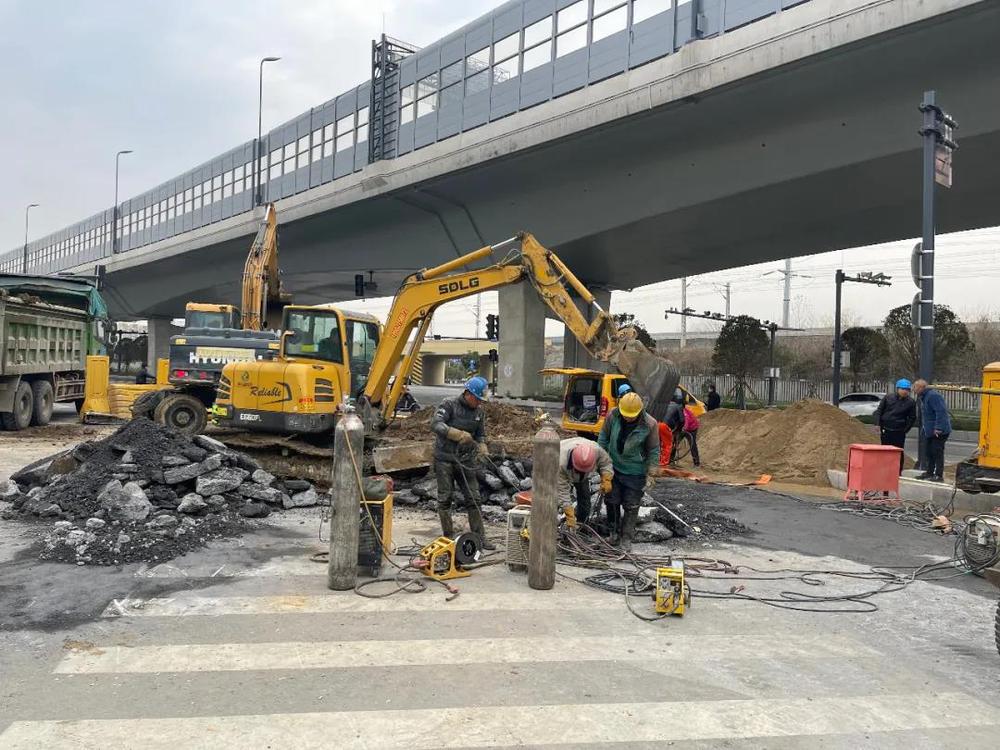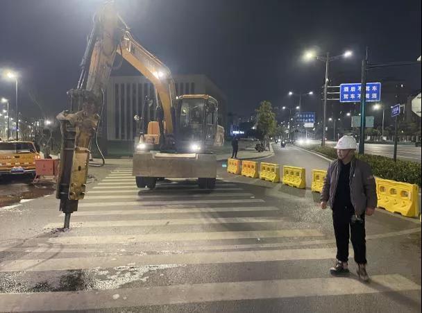 長江水務(wù)潤元公司緊急召開搶修方案討論會,做好搶修施工準(zhǔn)備工作,并協(xié)調(diào)供水調(diào)度中心對西湖增壓站實施降壓供水,晚上7點(diǎn),管道搶修工作全面開始。搶修現(xiàn)場破碎機(jī)和發(fā)電機(jī)轟鳴,熱火朝天,新年伴隨著遠(yuǎn)處傳來的鞭炮聲如期而至。在辭舊迎新的跨年之夜,搶修施工人員冒著凜冽的寒風(fēng),奮戰(zhàn)在搶修一線,地下管線密集交織、道路結(jié)構(gòu)層堅硬、漏水不斷滲入工作坑內(nèi),給搶修帶來了很大困難,大家各司其職,克難求進(jìn),加快工作進(jìn)程。