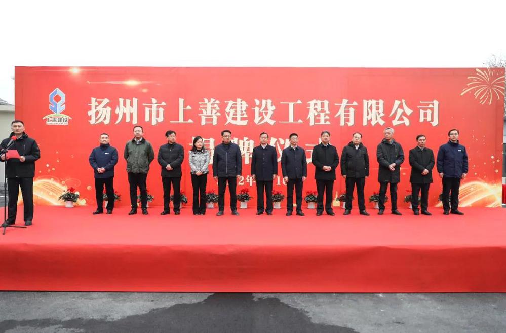 1月10日上午,揚(yáng)州市上善建設(shè)工程有限公司正式掛牌。市城控集團(tuán)黨委書記、董事長葉善祥出席活動(dòng)并為公司揭牌,副董事長戚磊主持了儀式,副總經(jīng)理周平致辭,城控集團(tuán)領(lǐng)導(dǎo)班子、部室中層正職、各子公司主要領(lǐng)導(dǎo)參加了揭牌儀式。