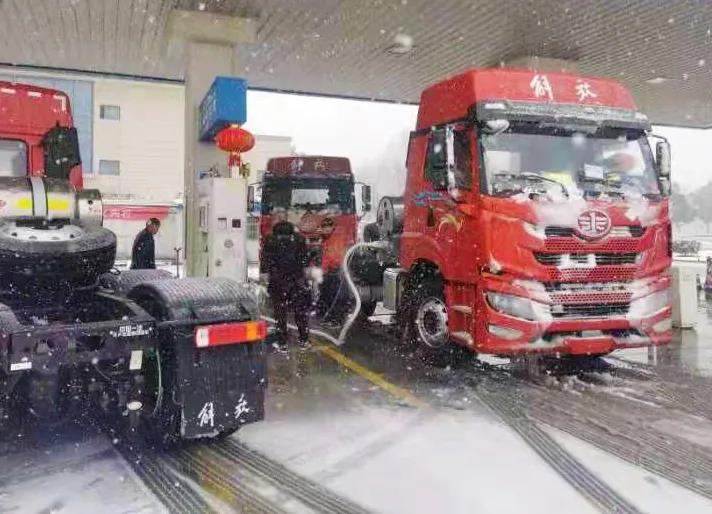 加氣站點內(nèi)前來加氣的公交車、出租車和重卡車輛絡繹不絕。為保證城市客運和過境重卡車用天然氣燃料的正常補給,加氣操作工們毅然守護在第一線,無畏風雪、年復一年地將看似簡單的操作零差錯地完成。
