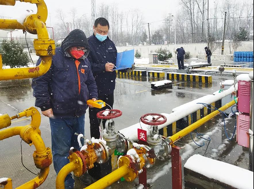 在楊廟液化氣場站,灌裝班組員工頂風冒雪,堅守崗位,在保證灌裝工作安全有序開展的同時,對場站設備設施,進行新一輪巡查檢修工作,確保在雨雪天氣下,所有設備設施正常運行。
