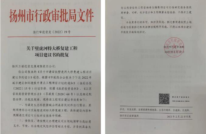 原壁虎大橋始建于1991年,橋長約226米,橋面全寬約6.1米,通行載重10噸。2021年9月,被一列失控船隊撞擊,約百米長的橋面塌入水中。事故發(fā)生后,市委、市政府領(lǐng)導高度重視并作出批示,需盡快保證山河島居民出行,目前已建成一座臨時鋼便橋,使用年限為2年。為長久改善島上居民出行、帶動灣頭古鎮(zhèn)與山河島旅游經(jīng)濟,根據(jù)市政府《關(guān)于下達2022年城市建設(shè)和環(huán)境提升重點工程項目計劃的通知》(揚府辦發(fā)【2022】15號)安排,由萬福公司負責壁虎河特大橋復建工程的建設(shè)。