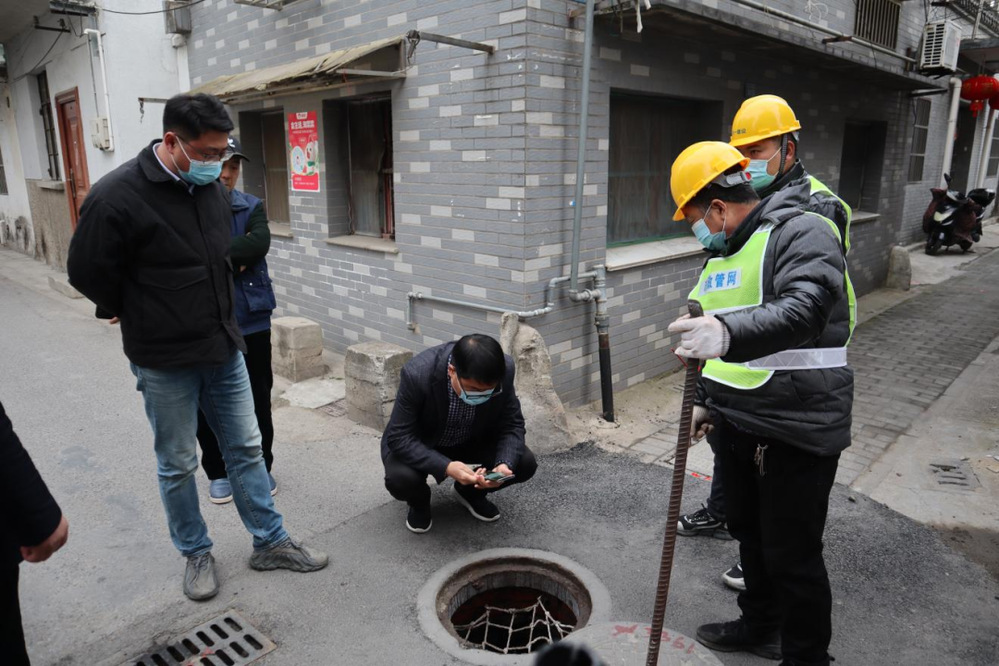 南通路上,疏通組的工作人員正在進(jìn)行道路疏通檢測(cè),清理管道內(nèi)的淤積,查看管道缺陷和混接情況,防止道路污水下河。