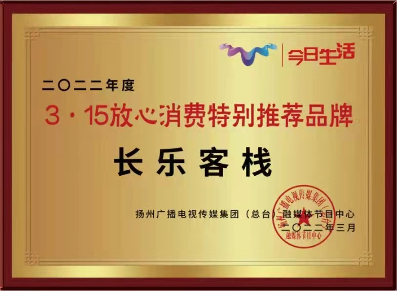 為進(jìn)一步推動(dòng)揚(yáng)州市國(guó)際文化旅游名城建設(shè),大力倡導(dǎo)誠實(shí)守信的經(jīng)營(yíng)風(fēng)尚,積極營(yíng)造安全放心的消費(fèi)環(huán)境,全面提升酒店軟實(shí)力,市相關(guān)部門于2022年3月聯(lián)合開展“3.15放心消費(fèi)特別推薦品牌”評(píng)比活動(dòng)。長(zhǎng)樂客棧酒店積極參與申報(bào),經(jīng)過行業(yè)推薦、信用評(píng)價(jià)、大眾投票、專家評(píng)審等環(huán)節(jié)后,最終成功獲得“2022年度揚(yáng)州市3.15放心消費(fèi)特別推薦品牌”榮譽(yù)稱號(hào)。