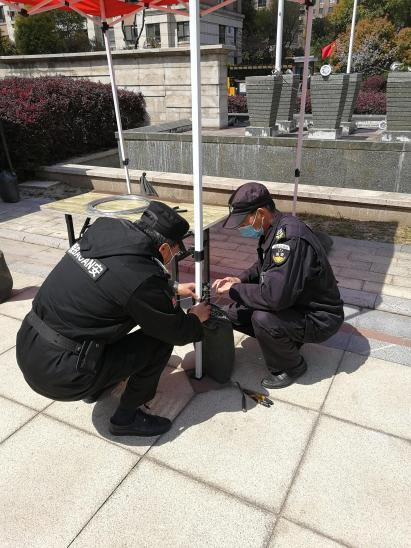 隨后,管家們有序完成場地清理、臨時檢測點位搭建,人流檢測動線、排隊一米線布置等工作。檢測現(xiàn)場,京杭融園項目部派出多名工作人員維持現(xiàn)場秩序,積極引導業(yè)主排隊核酸檢測,掃碼登記,盡可能確保核酸檢測有序開展。