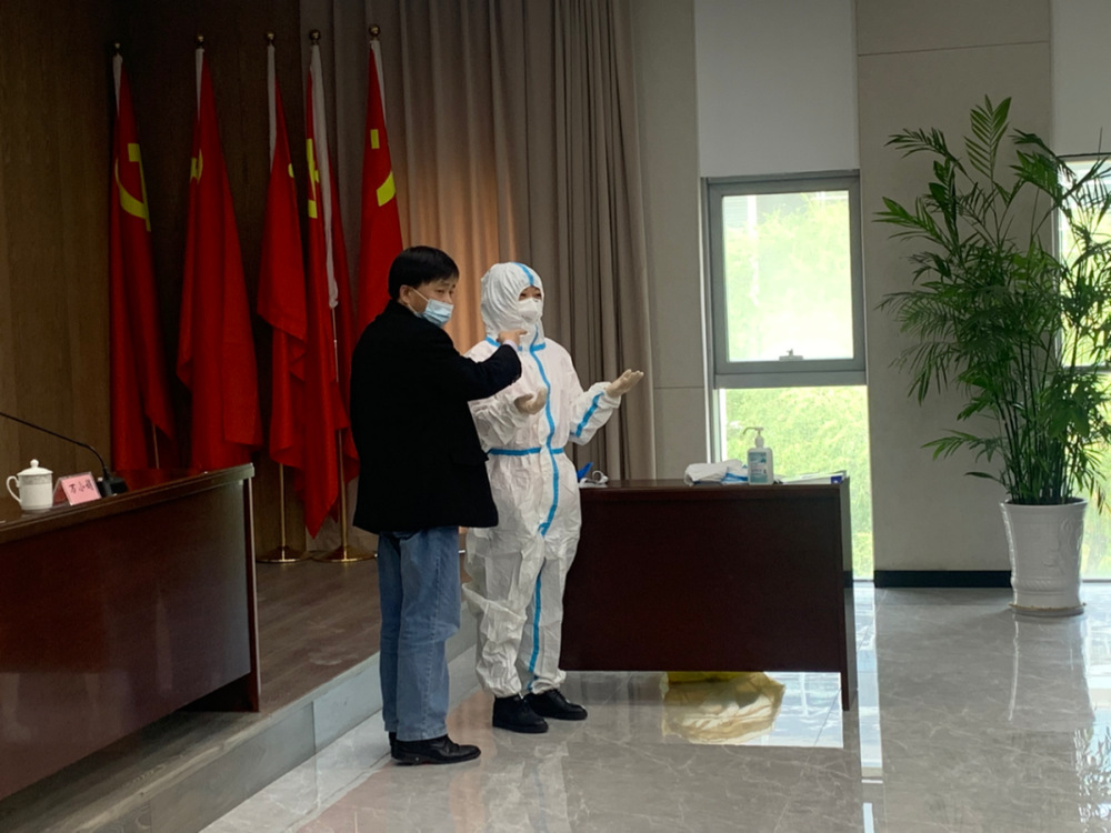 疾控專家現(xiàn)場演示了防護(hù)服穿脫、歸置要求。