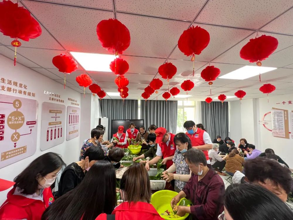 隨后,志愿者們來到社區(qū)活動室將提前準(zhǔn)備好的糯米、粽葉、香腸、大棗等食材擺上桌,不少年輕志愿者們也紛紛向居民長輩學(xué)習(xí)包粽子的手法,在她們的耐心指導(dǎo)下包的有模有樣。大家圍在一起其樂融融,一片片清香的粽葉、一粒粒晶瑩的糯米,轉(zhuǎn)眼就變成了一個個誘人的粽子,活動現(xiàn)場到處洋溢著節(jié)日的氣息。最后,在社區(qū)工作人員的指導(dǎo)下,將粽子送至社區(qū)困難家庭和空巢老人、殘疾兒童手中,在節(jié)日里送去溫暖問候,同時也將粽子送給即將參加高考的學(xué)子,寓意一舉高“粽”,為他們加油鼓勁!