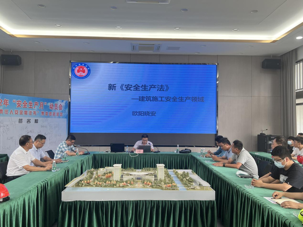 為進一步提高職工人員應對突發(fā)事故風險意識和現(xiàn)場處置能力,確保企業(yè)項目安全生產(chǎn),6月29日下午,置業(yè)公司頤和項目部緊緊圍繞“安全生產(chǎn)月”主題,開展了新安全法專家講座以及物體打擊應急演練活動。置業(yè)公司相關領導、頤和項目部各標段負責人、嘉都匯項目部相關人員以及揚州市質(zhì)安站重大項目科專家參加此次活動。