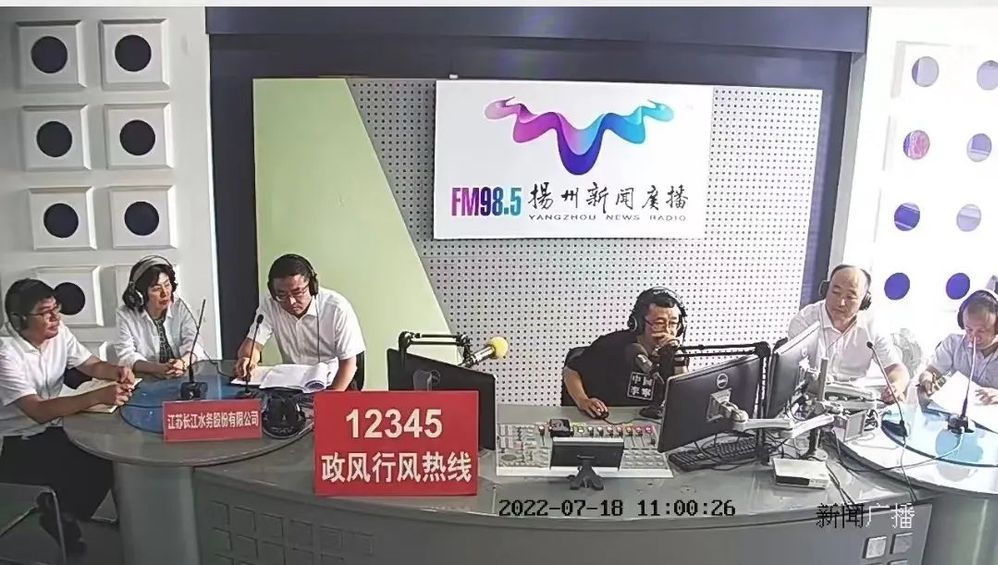 7月18日,長江水務公司有關負責人帶隊,走進“12345”政風行風熱線直播間,圍繞“夏季供水安全”主題,通過熱線和廣大市民進行互動交流,聽取市民對供水服務工作的意見和建議,回應市民訴求,揚州廣電總臺揚帆手機客戶端對本次活動進行了直播。