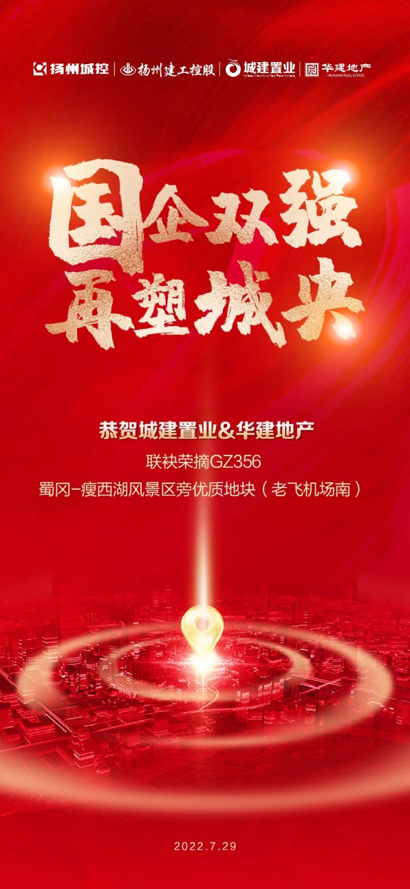 7月29日上午,揚州市第四次土拍結果出爐,在經過激烈的104筆競價后,西區(qū)GZ356地塊(原飛機場南)以樓面價10144元/㎡,成交價約8.9億元被城建置業(yè)公司聯(lián)合華建地產摘得。