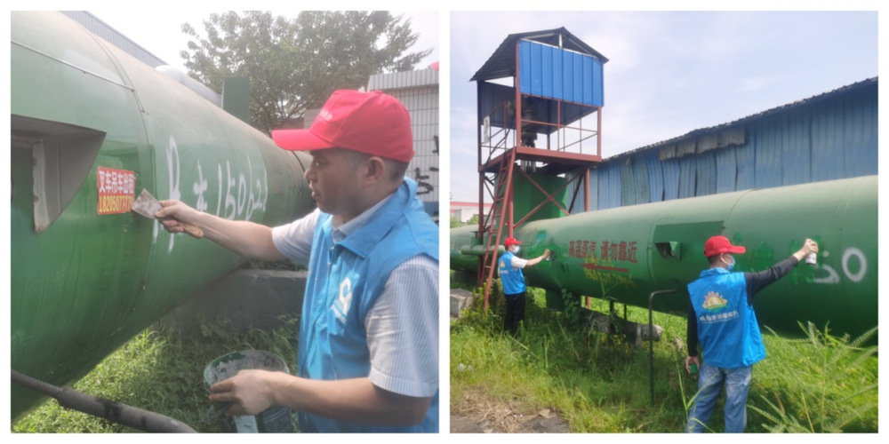 此次活動(dòng)共22名志愿者參加,集中整治古渡路南段揚(yáng)二線DN800大口徑管道上的“亂貼亂涂”現(xiàn)象。伴隨著烈日驕陽(yáng),大家熱情高漲,活動(dòng)現(xiàn)場(chǎng)呈現(xiàn)一片熱火朝天、干勁十足的景象。一組志愿者在亂貼亂畫(huà)的地方,把廣告貼紙噴濕后,再拿清理專(zhuān)用鏟仔仔細(xì)細(xì)地清理,大家配合默契,“洗、遞、擦”一氣呵成。另一組志愿者對(duì)管道上噴涂廣告進(jìn)行覆蓋清除,站在架扶梯上,聞著刺鼻的油漆味,對(duì)管道外殼上的噴涂廣告進(jìn)行再?lài)娡扛采w,他們額頭、臉上、嘴邊布滿(mǎn)細(xì)密的汗珠。