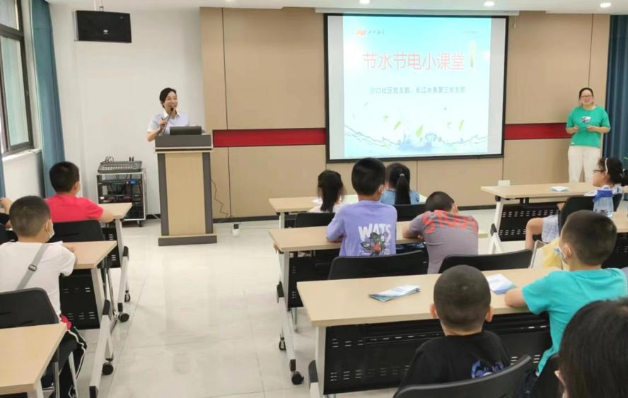 在沙口社區(qū)會(huì)議室,大家首先聆聽廣陵區(qū)關(guān)工委講師團(tuán)宣講的“老少同心向黨,喜迎二十大”專題報(bào)告,長江水務(wù)公司節(jié)水節(jié)電宣講團(tuán)成員通過發(fā)放宣傳單的方式,向社區(qū)居民和小朋友普及揚(yáng)州水資源知識(shí)、講解節(jié)水節(jié)電小知識(shí)、分享家庭節(jié)水節(jié)電小竅門,與小朋友開展互動(dòng)交流。大家紛紛暢談和分享各自的節(jié)水節(jié)電經(jīng)驗(yàn),并表示將用實(shí)際行動(dòng)節(jié)約每一滴水,每一度電。宣講活動(dòng)現(xiàn)場共發(fā)放節(jié)水宣傳單50余份,并組織部分用戶實(shí)地參觀九境融園二次供水泵房。