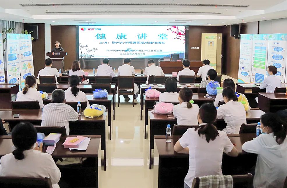 為進一步提升職工健康意識,增強自我保健能力,8月30日下午,揚州中燃工會女工委聯(lián)合揚大附院外科第六黨支部開展健康講堂活動。本期特邀揚州大學附屬醫(yī)院骨科行政副主任 、骨科脊柱外科專業(yè)組組長杜建偉團隊授課。公司一線服務(wù)部門和職能部門近50名職工參加活動。