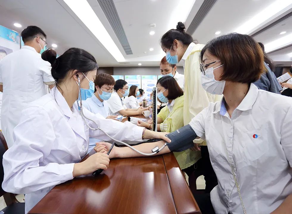 講座結(jié)束后,杜建偉團隊在現(xiàn)場設(shè)置“專家門診”,為參加講座的職工們進行“一對一”義診和問診,為職工測量血壓、血糖,解答義診過程中職工提出的疑惑。
