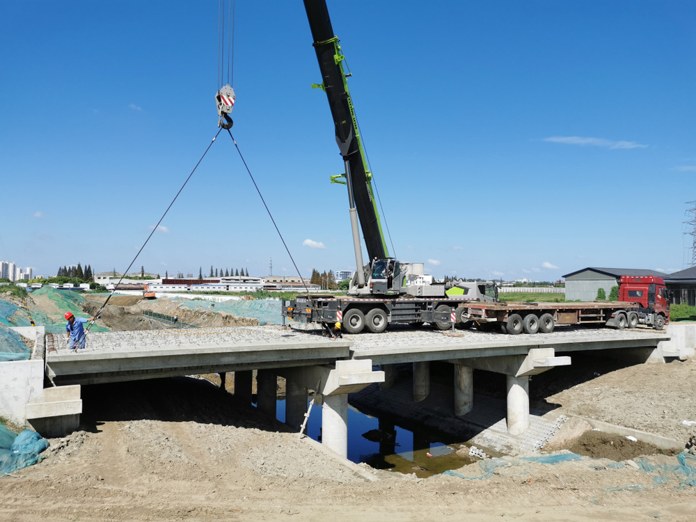 書安路橋全長36米,為三跨簡支梁橋,上部結(jié)構(gòu)為3*10米長預(yù)制空心梁板,下部結(jié)構(gòu)采用樁柱式橋臺及橋墩,橋面寬度14.6米。為保證吊裝過程平穩(wěn)有序,名城公司牽頭組織現(xiàn)場勘查、技術(shù)方案制定、施工組織等多方面工作。